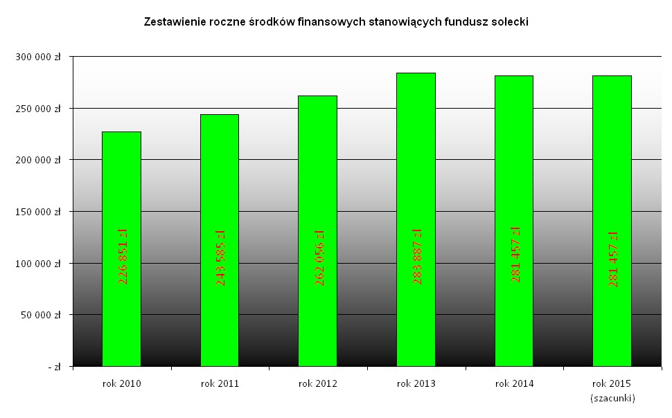 Otóż fundusz sołecki są to środki finansowe wyodrębnione w budżecie gminy. Przeznaczone są one na realizację zadań zgłoszonych przez poszczególne sołectwa. Wielkość funduszu sołeckiego zależy od kilku zmiennych: liczby mieszkańców sołectwa, liczby mieszkańców gminy i wykonanych dochodów gminy. Wyliczona wielkość przypadającej na sołectwo kwoty przekazywana jest sołtysom do końca lipca. W oparciu o te informacje sołtysi zwołują zebranie wiejskie. Podczas tego zebrania określone zostaje przeznaczenie środków. Propozycje zadań realizowanych w sołectwie mogą składać: sołtys, rada sołecka i co najmniej 15 pełnoletnich mieszkańców sołectwa. Uchwalony przez zebranie wiejskie wniosek wydatkowania funduszu sołeckiego sołtys w ciągu 7 dni przedkłada Wójtowi, jednak nie później niż do dnia 30 września. Jeżeli określone we wniosku zadania zgodne są z ustawowymi wymogami jest on ujmowany w projekcie budżetu. Ustawa o funduszu sołeckim narzuca jedynie, że środki muszą być przeznaczone na przedsięwzięcia, które są zadaniami własnymi gminy, służą poprawie warunków życia mieszkańców i są zgodne ze strategią rozwoju. Tak więc wymagania te nie są bardzo restrykcyjne i pozostawiają mieszkańcom dużą dowolność w przeznaczaniu tych środków.