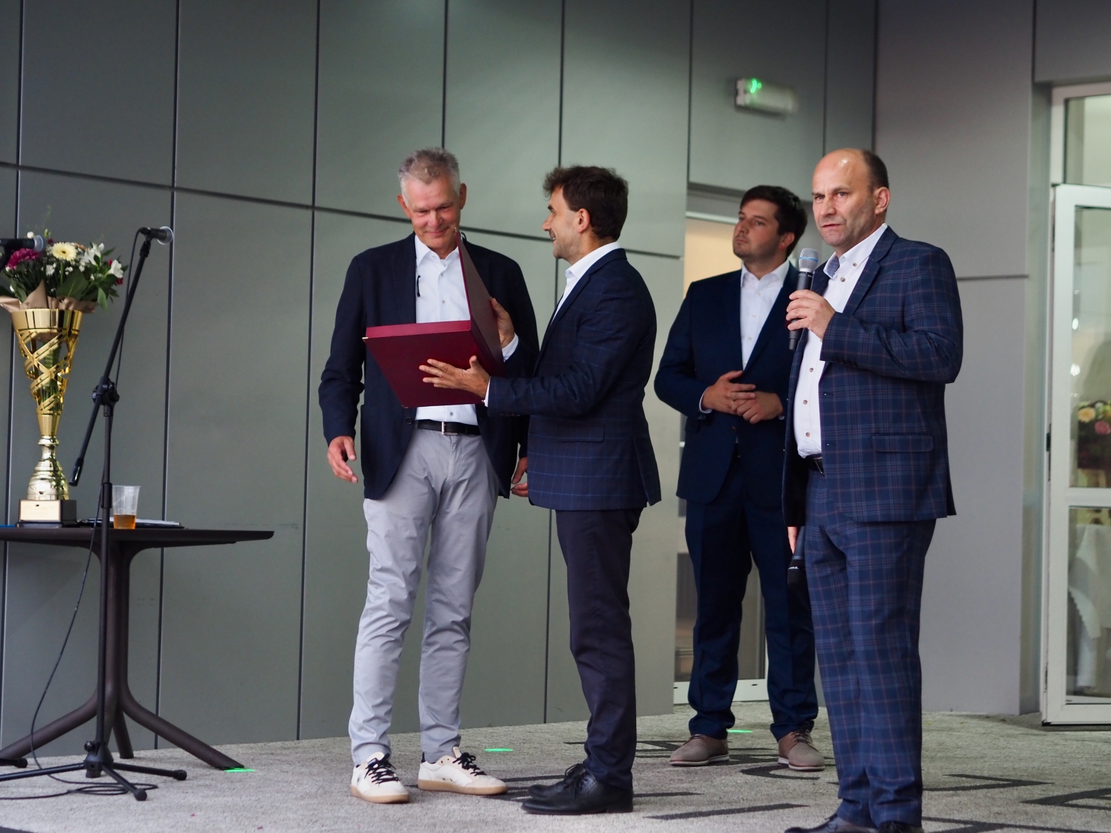 Z tej okazji, reprezentując samorząd, wójt złożył serdeczne gratulacje właścicielowi firmy i jej zarządowi życząc dalszej owocnej współpracy i dalszego rozwoju firmy.