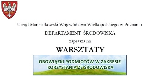 DEPARTAMENT ŚRODOWISKA zaprasza na WARSZTATY, które odbędą się w dniu 7 marca 2016 r. o godz. 9.00 w siedzibie Urzędu Marszałkowskiego Województwa Wielkopolskiego w Poznaniu, al. Niepodległości 34, sala sesyjna.