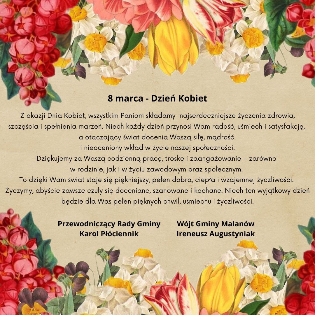 Z okazji Dnia Kobiet, wszystkim Paniom składamy najserdeczniejsze życzenia zdrowia, szczęścia i spełnienia marzeń. Niech każdy dzień przynosi Wam radość, uśmiech i satysfakcję, a otaczający świat docenia Waszą siłę, mądrość i nieoceniony wkład w życie naszej społeczności.