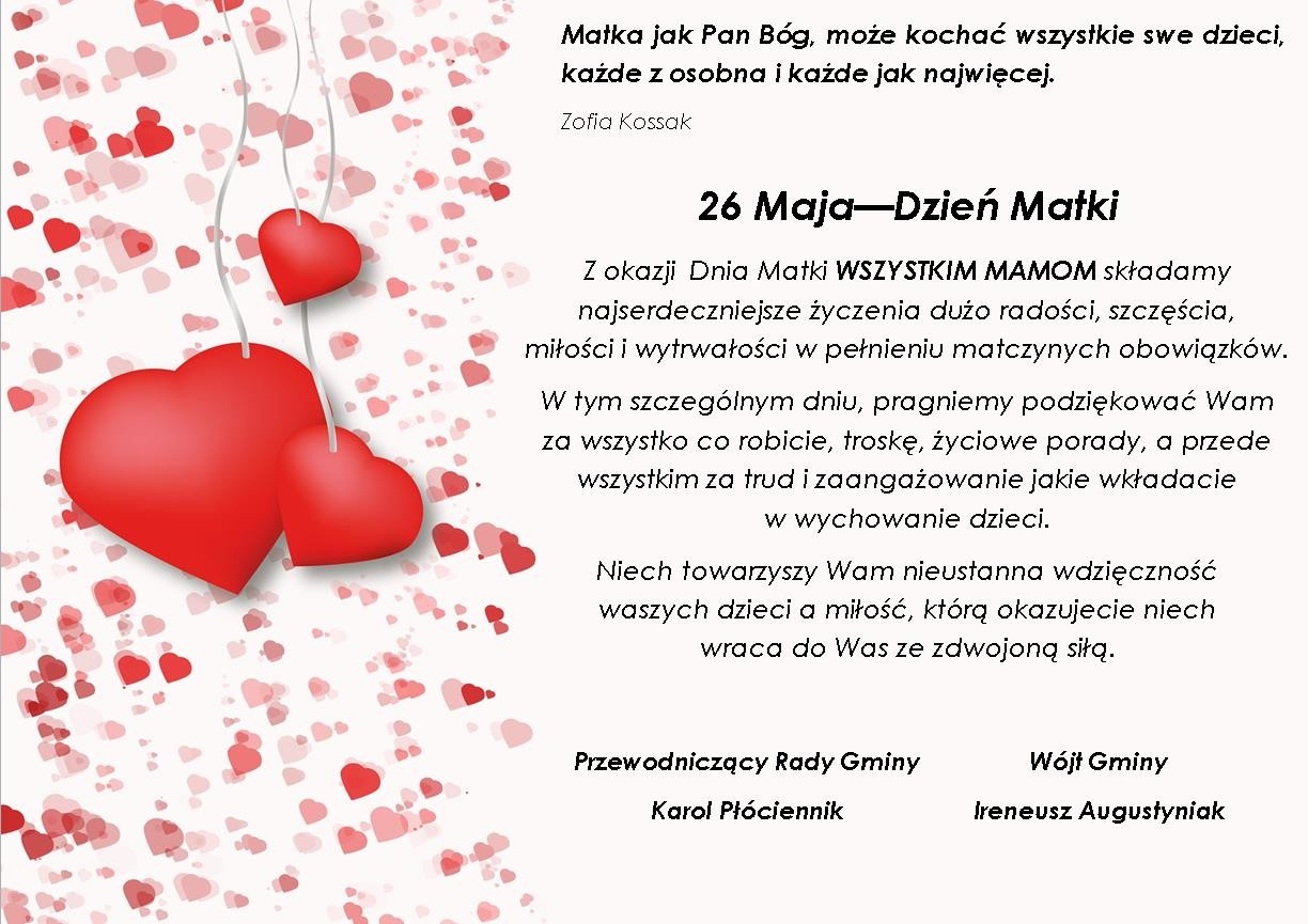 Z okazji Dnia Matki WSZYSTKIM MAMOM składamy najserdeczniejsze życzenia dużo radości, szczęścia, miłości i wytrwałości w pełnieniu matczynych obowiązków.