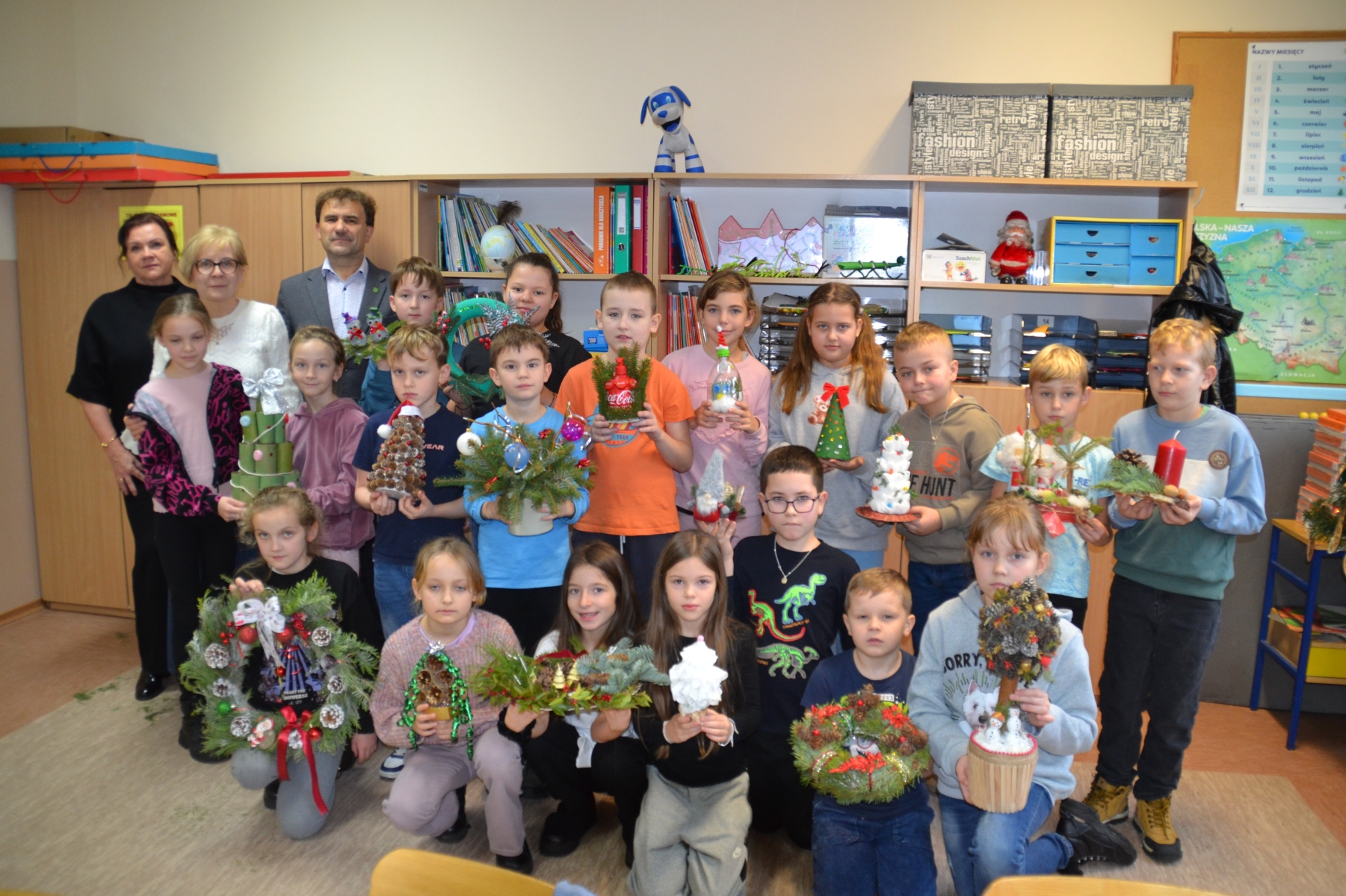Tegorocznym zadaniem uczestników było wykonanie stroika bożonarodzeniowego z surowców wtórnych, zwłaszcza takich, których nie wolno spalać, jak plastikowe i szklane opakowania, nakrętki czy różnorodne zużyte przedmioty. Dzieci z dużym zaangażowaniem i wyobraźnią tworzyły dekoracje, udowadniając, że recykling może być nie tylko pożyteczny, ale również inspirujący.