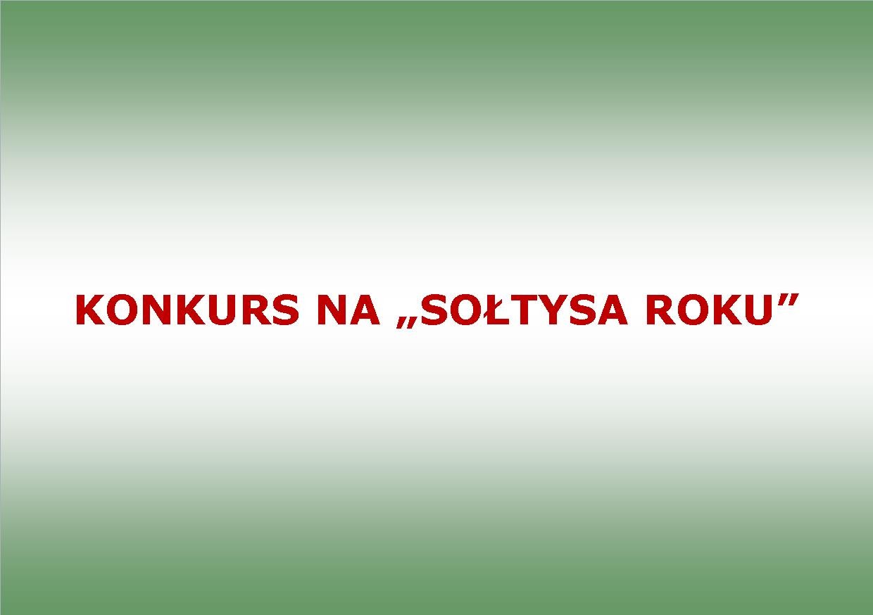 Informujemy, że Redakcja miesięcznika "Gazeta Sołecka" wraz z Krajowym Stowarzyszeniem Sołtysów ogłaszają konkurs na "Sołtysa Roku". Zgłoszenia kandydatów wraz z dokumentacją konkursową należy przesyłać do 28 lutego na adres: Gazeta Sołecka, al. Niepodległości 151/6, 02-555 Warszawa. Zapraszamy do zgłaszania swoich przedstawicieli. Regulamin konkursu oraz karta zgłoszeniowa w załączniku lub na stronie www.gazetasolecka.pl.