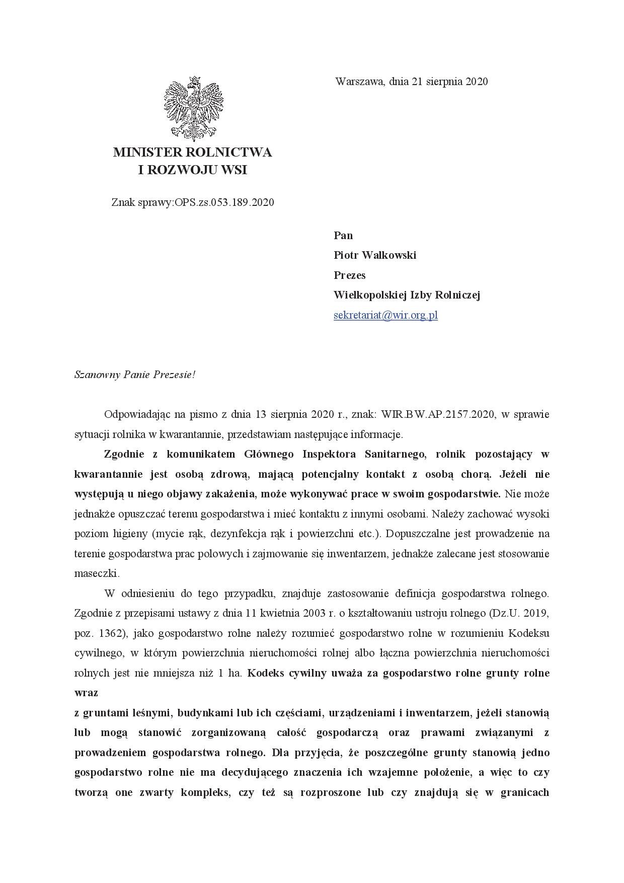 Wielu z nas zadaje sobie pytanie: czy rolnik, który nie jest chory na COVID-19, ale przebywa na kwarantannie, może prowadzić prace polowe na użytkowanych przez siebie gruntach? Ministerstwo Rolnictwa i Rozwoju Wsi zabrało w piątek w tej sprawie głos.