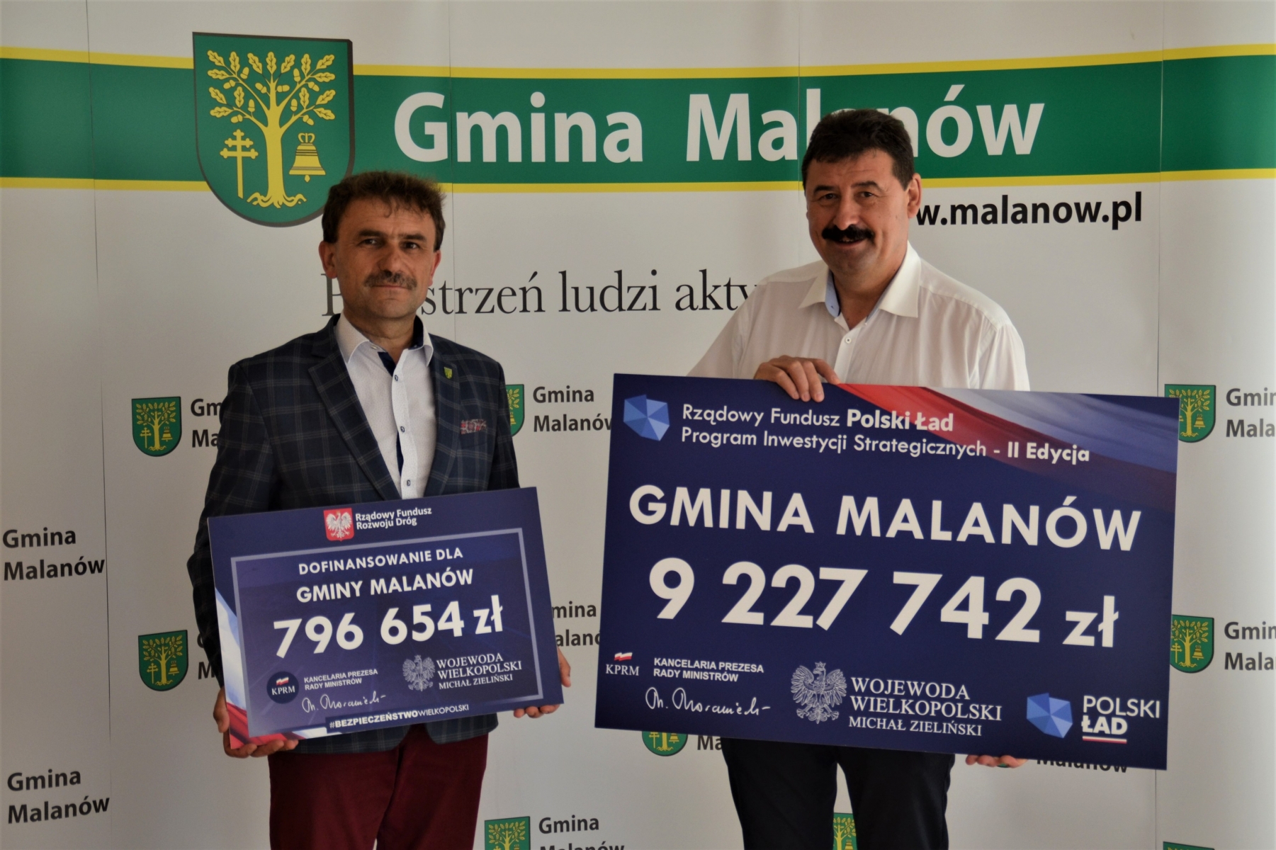 Gmina Malanów otrzymała też czek na łączną kwotę 9 227 742 zł w ramach rozstrzygnięcia II edycji Rządowego Programu Inwestycji Strategicznych „Polski Ład”. Środki te zostaną przeznaczone na realizację inwestycji drogowych, a mianowicie budowę ulic Nowej, Tęczowej i Wiosennej w Malanowie oraz kilku innych dróg w pozostałych miejscowościach na terenie gminy.