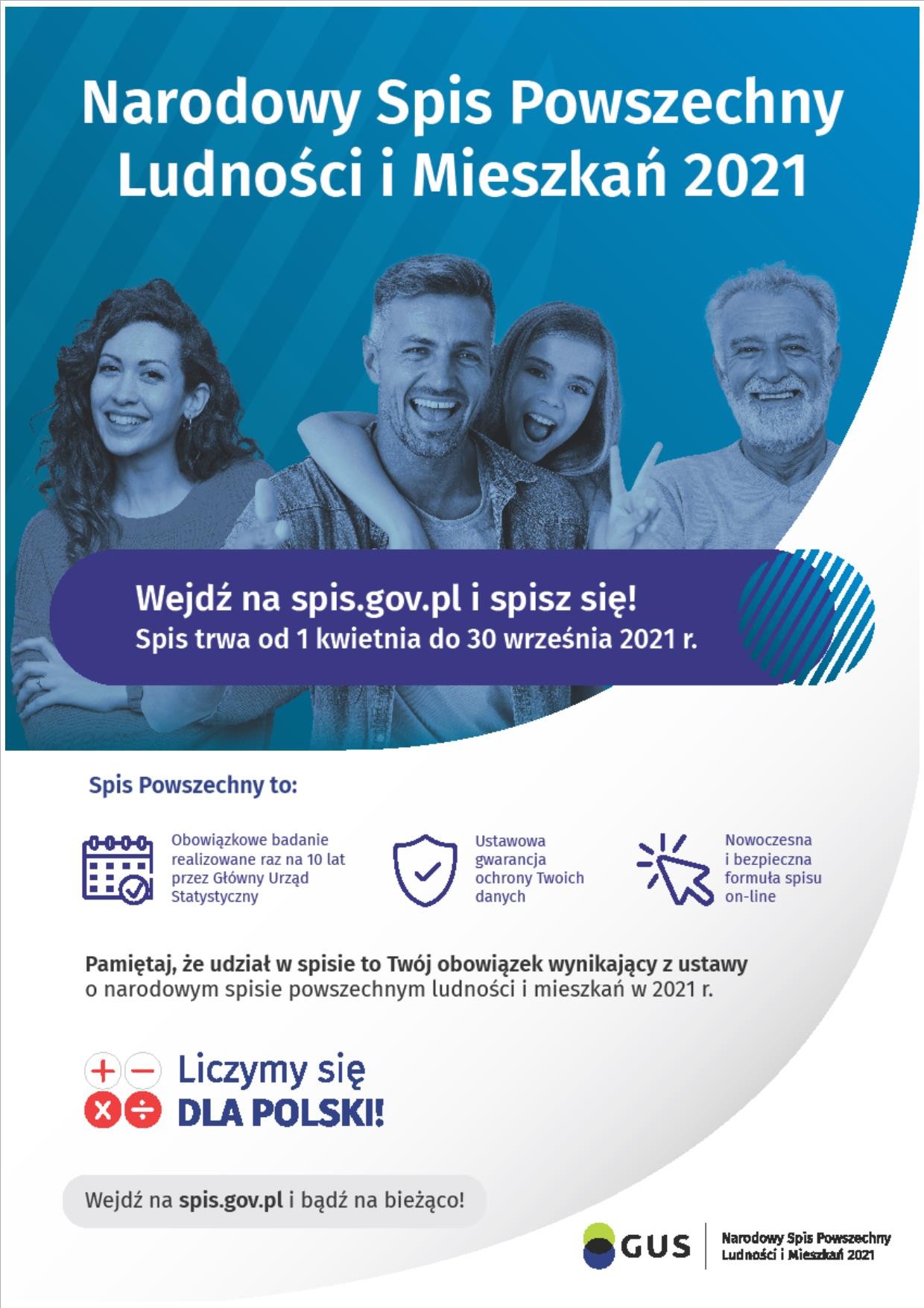 W związku z rozpoczęciem Narodowego Spisu Powszechnego Ludności i Mieszkań 2021 i jego wydłużeniem do 30 września br. uprzejmie informujemy, że podstawową metodą realizacji obowiązku spisowego jest samospis poprzez aplikację: kliknij tutaj