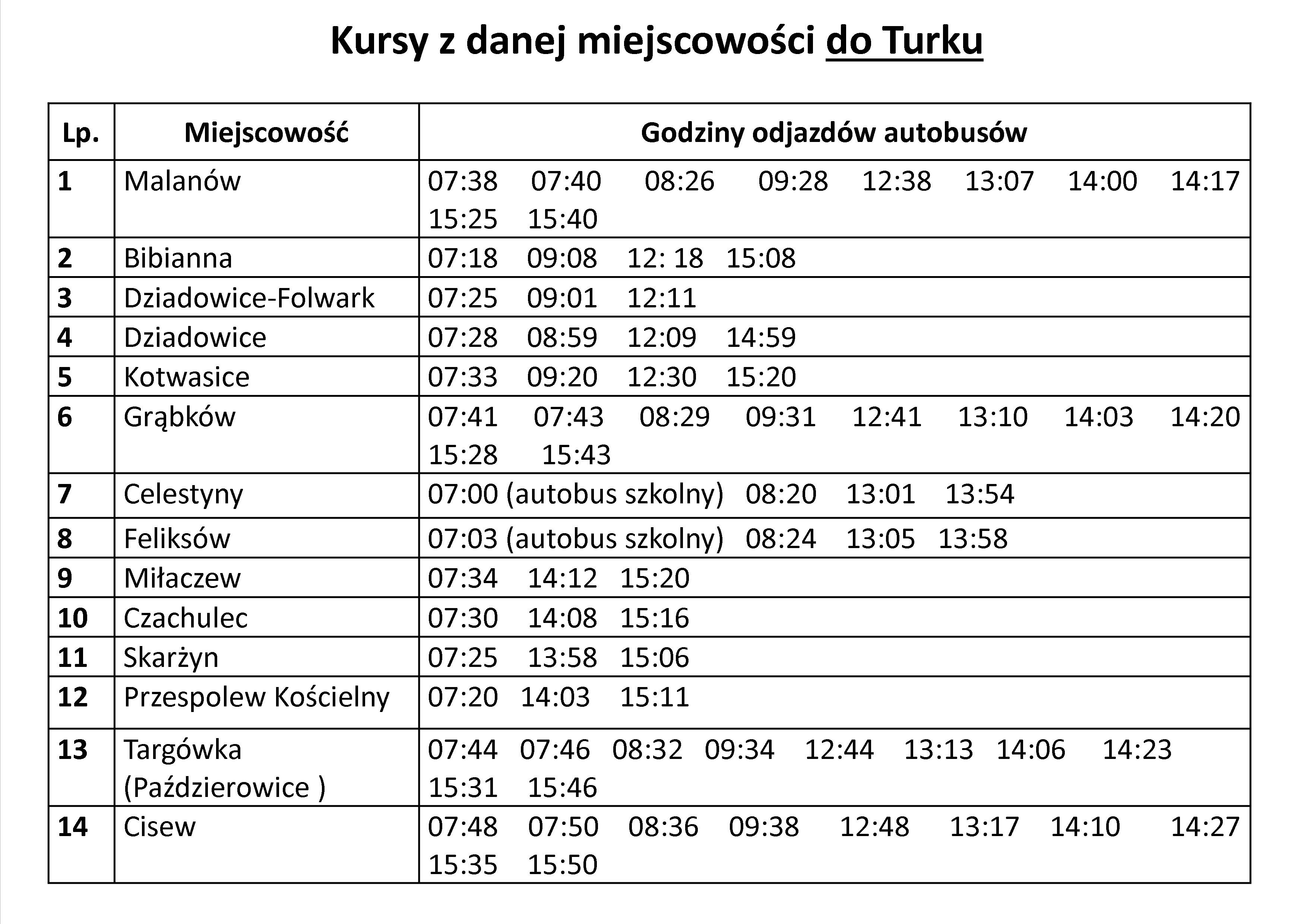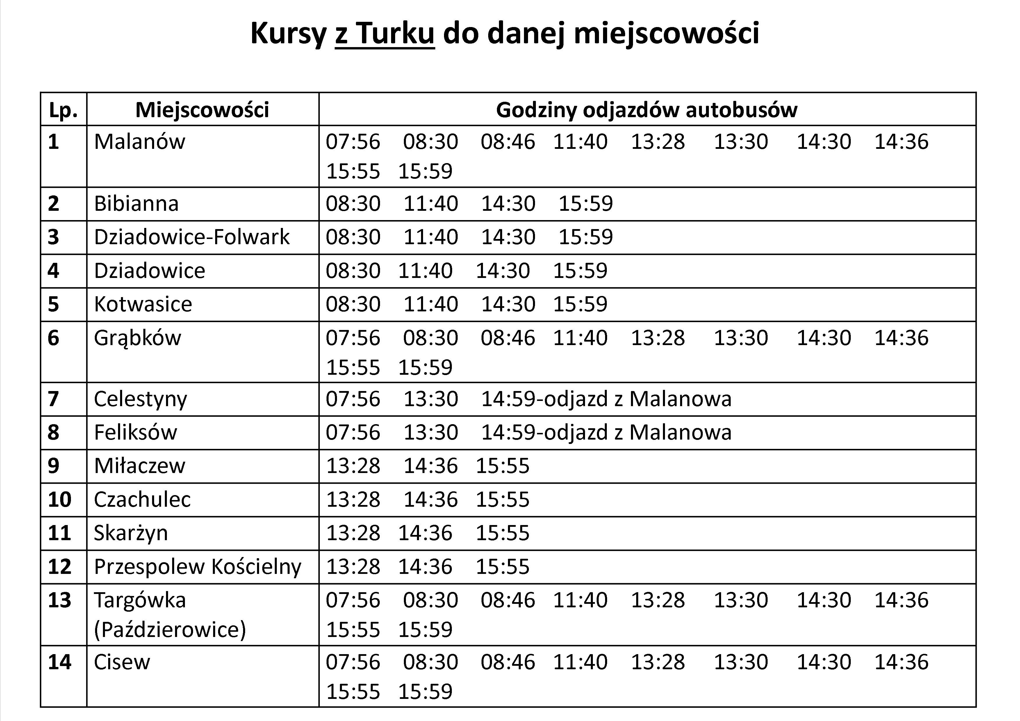 Poniższe tabele przedstawiają godziny w jakich będą kursować autobusy PKS Malanów