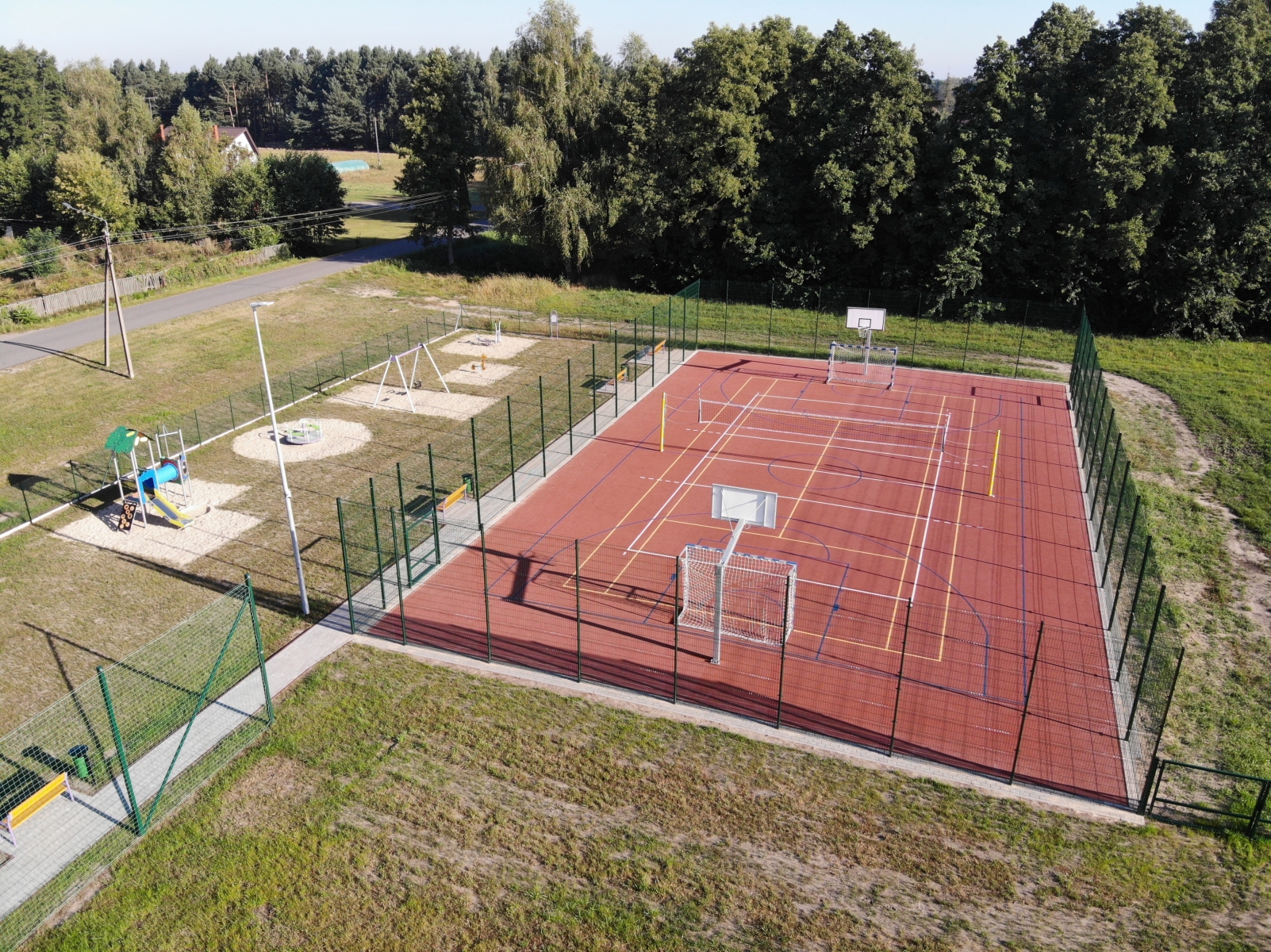 | Zagospodarowanie centrum wsi Bibianna - inwestycja rozpoczęła się jeszcze w roku 2024, a jej zakończenie miało miejsce w roku 2025. W ramach kompleksowego zadania wykonano m.in. boisko wielofunkcyjne o nawierzchni poliuretanowej, plac zabaw z elementami siłowni zewnętrznej, elementy małej architektury, modernizację istniejących boisk do gry w piłkę nożną, piłkę plażową oraz wyrównano teren przy świetlicy wiejskiej w Bibiannie wraz z nasadzeniem drzew.