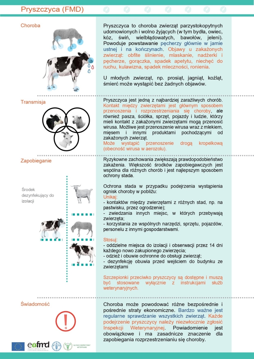 W związku z realnym zagrożeniem wystąpienia pryszczycy na terytorium Polski, Powiatowy Lekarz Weterynarii w Turku przesyła ulotkę dotyczącą zapobiegania pryszczycy.