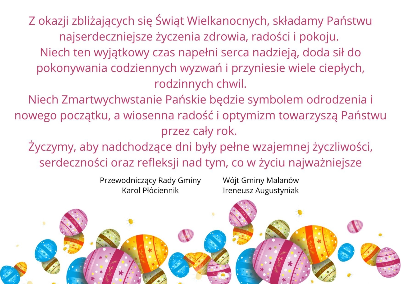 Z okazji zbliżających się Świąt Wielkanocnych, składamy Państwu najserdeczniejsze życzenia zdrowia, radości i pokoju.
