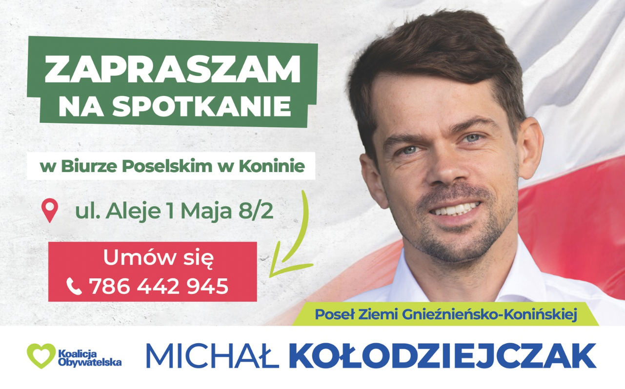 Poseł Michał Kołodziejczak zaprasza na spotkanie w biurze poselskim w Koninie.