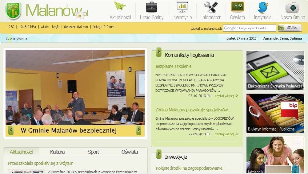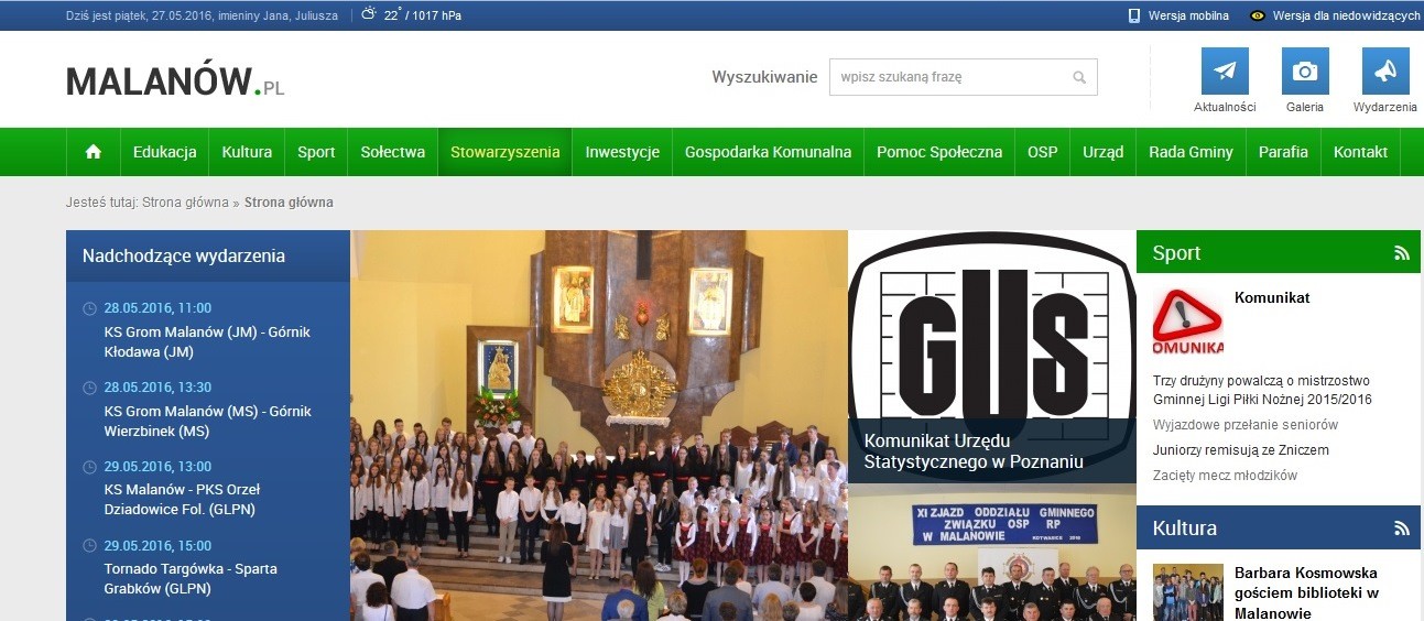 Żyjemy w czasach ciągłego postępu technologicznego. W 1969 roku powstała pierwsza sieć internetowa, a w 1990 roku pierwsza strona internetowa. Pojawienie się rok później protokołu www zapoczątkowało ekspansję globalnej sieci. Już na początku XXI wieku mówiło się, że jeśli firma bądź organizacja nie ma strony internetowej i nie ma adresu e-mail to nie istnieje. Ale czas pędzi do przodu, a rozwój technologiczny razem z nim. Dotarliśmy do punktu, w którym wyznacznikiem cyfrowego istnienia firmy czy organizacji jest posiadanie konta na portalu społecznościowym. Szacuje się, że z najpopularniejszego social media korzysta w Polsce już ok. 25 mln osób. Oczywiście za tymi wszystkimi zmianami muszą nadążać także samorządy. I tak na początku wieku powstała pierwsza profesjonalna strona internetowa Gminy Malanów. Dla przypomnienia znajduje się ona tutaj: www.archiwum.malanow.pl. Dziesięć lat później dzięki środkom unijnym stronę internetową zastąpił znanym wszystkim obecny portal: www.malanow.pl. Rok 2015 to kolejny przełom internetowy w cyfrowej historii Gminy Malanów - od kilku dni jesteśmy już na Facebooku: www.facebook.com/Gmina-Malanow-983197605121713.