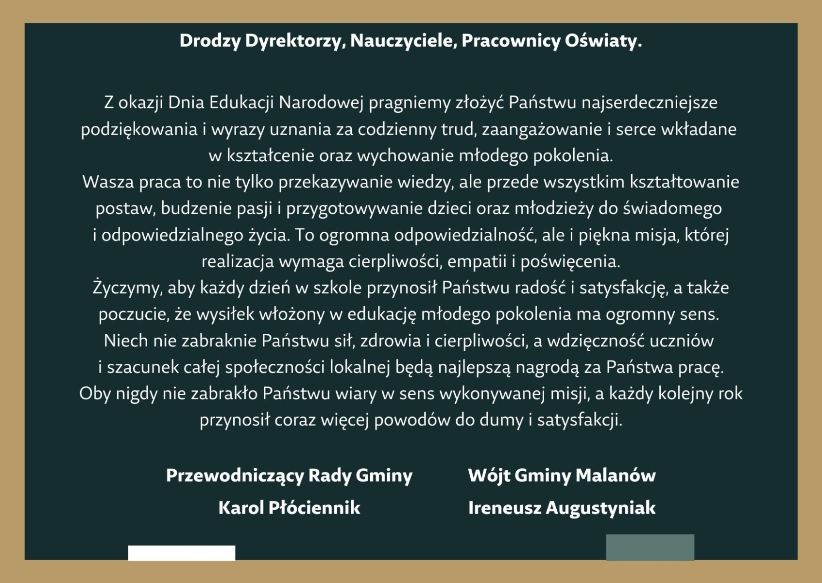 Jesteś tutaj: Strona główna » Referat Organizacyjny » Aktualności » Życzenia z okazji Dnia Edukacji Narodowej